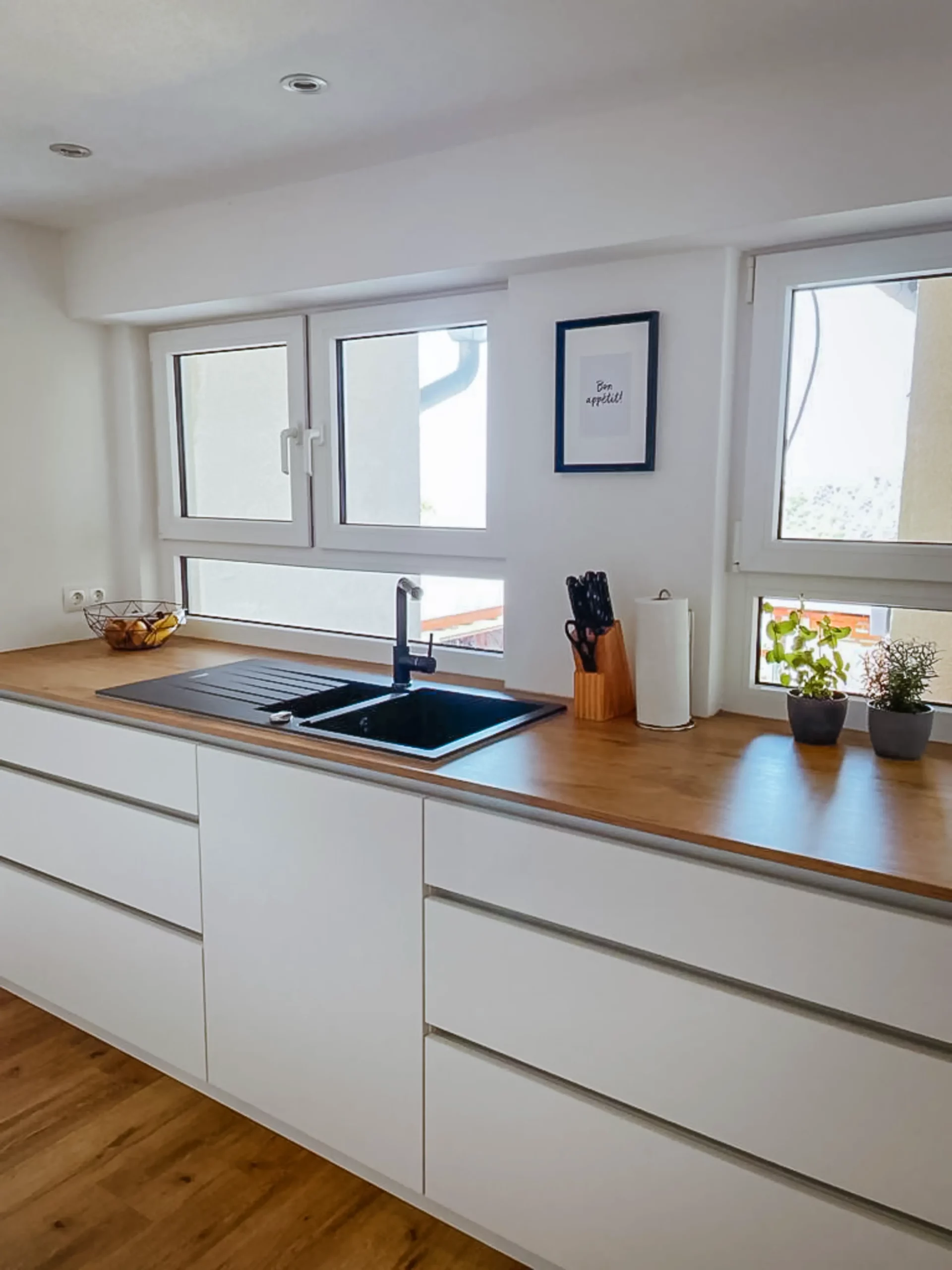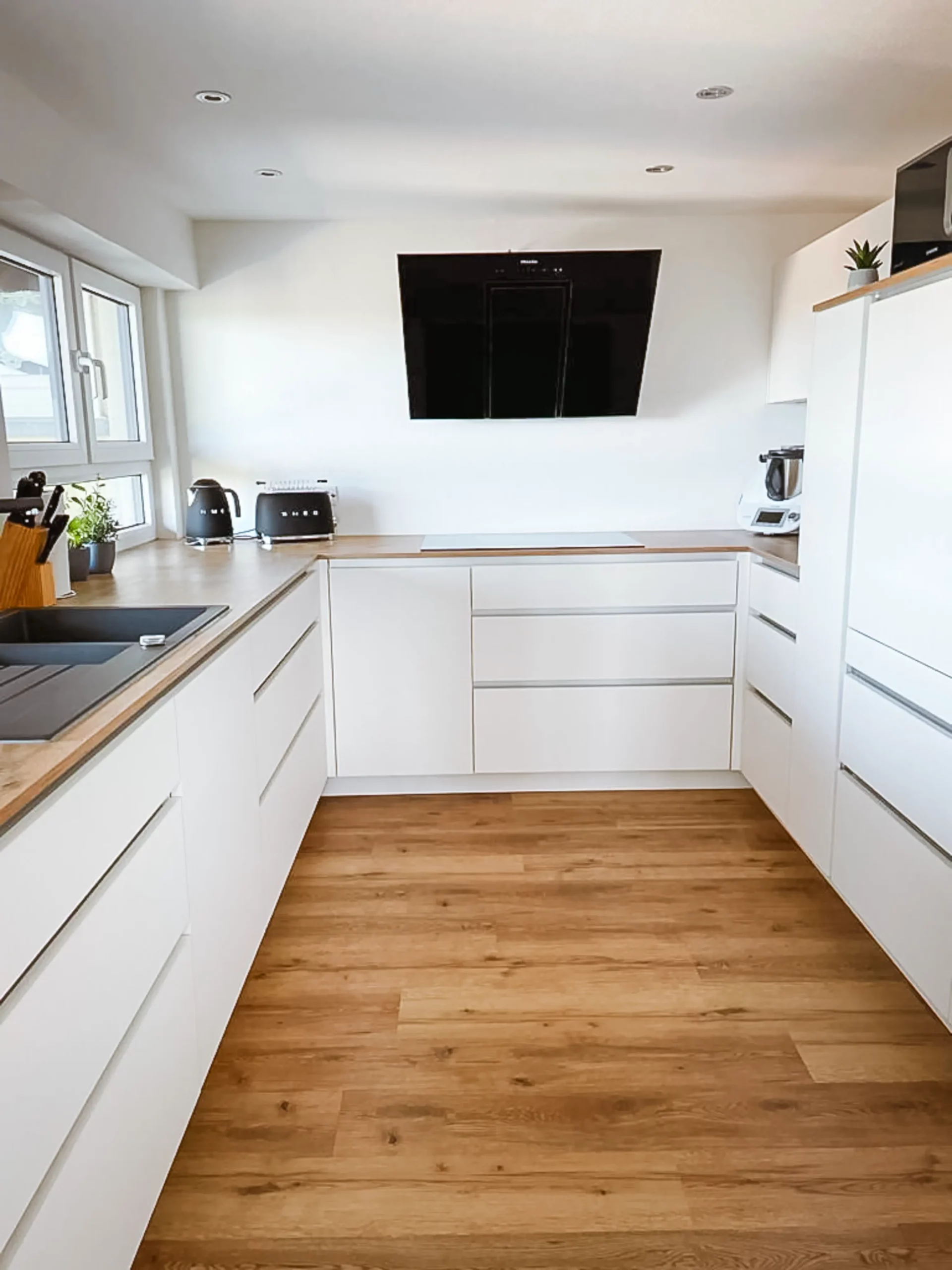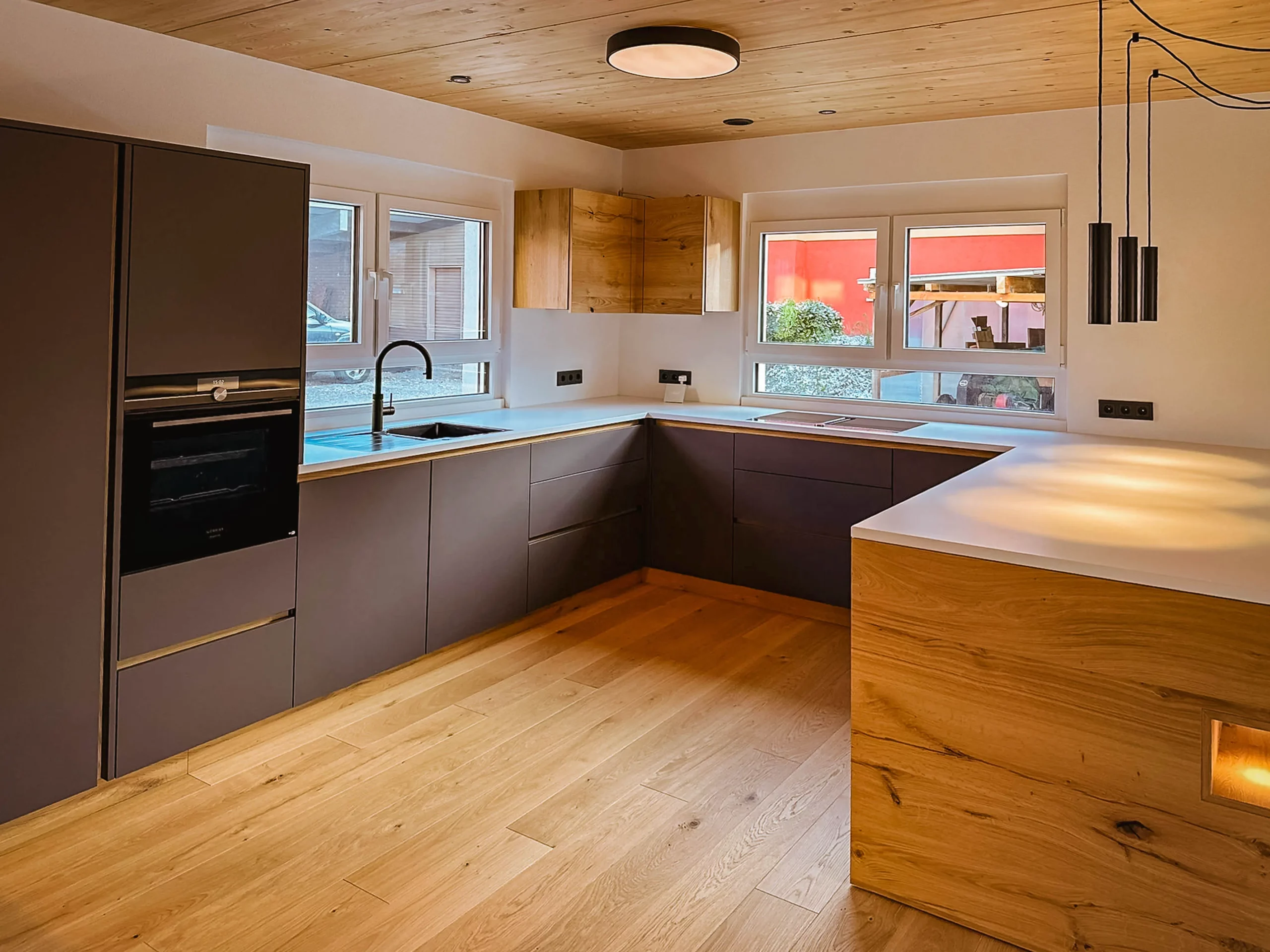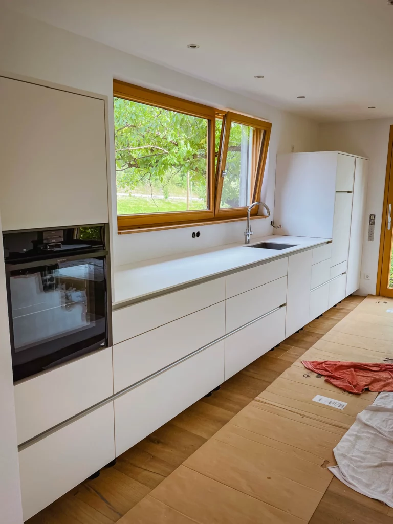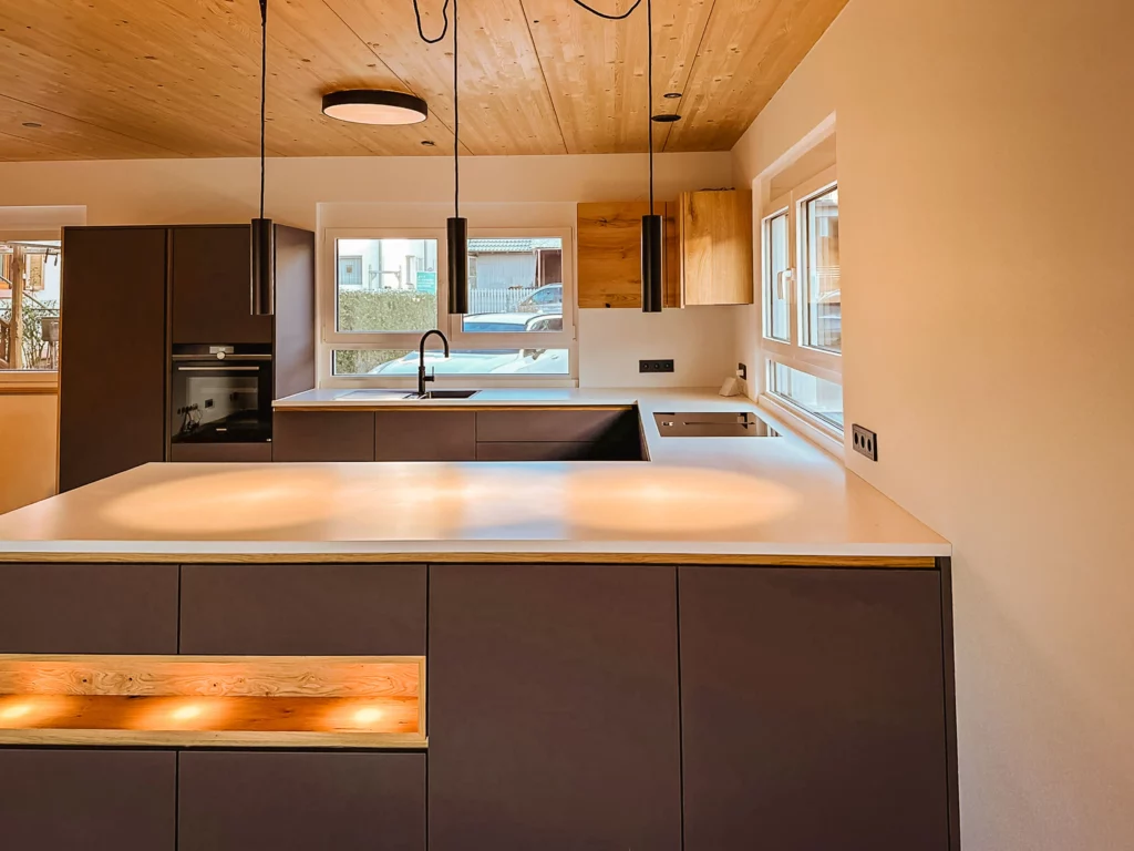 Perfekte Ausnutzung jeder Nische, ergonomische Arbeitswege und hochwertige Materialien für den täglichen Gebrauch.