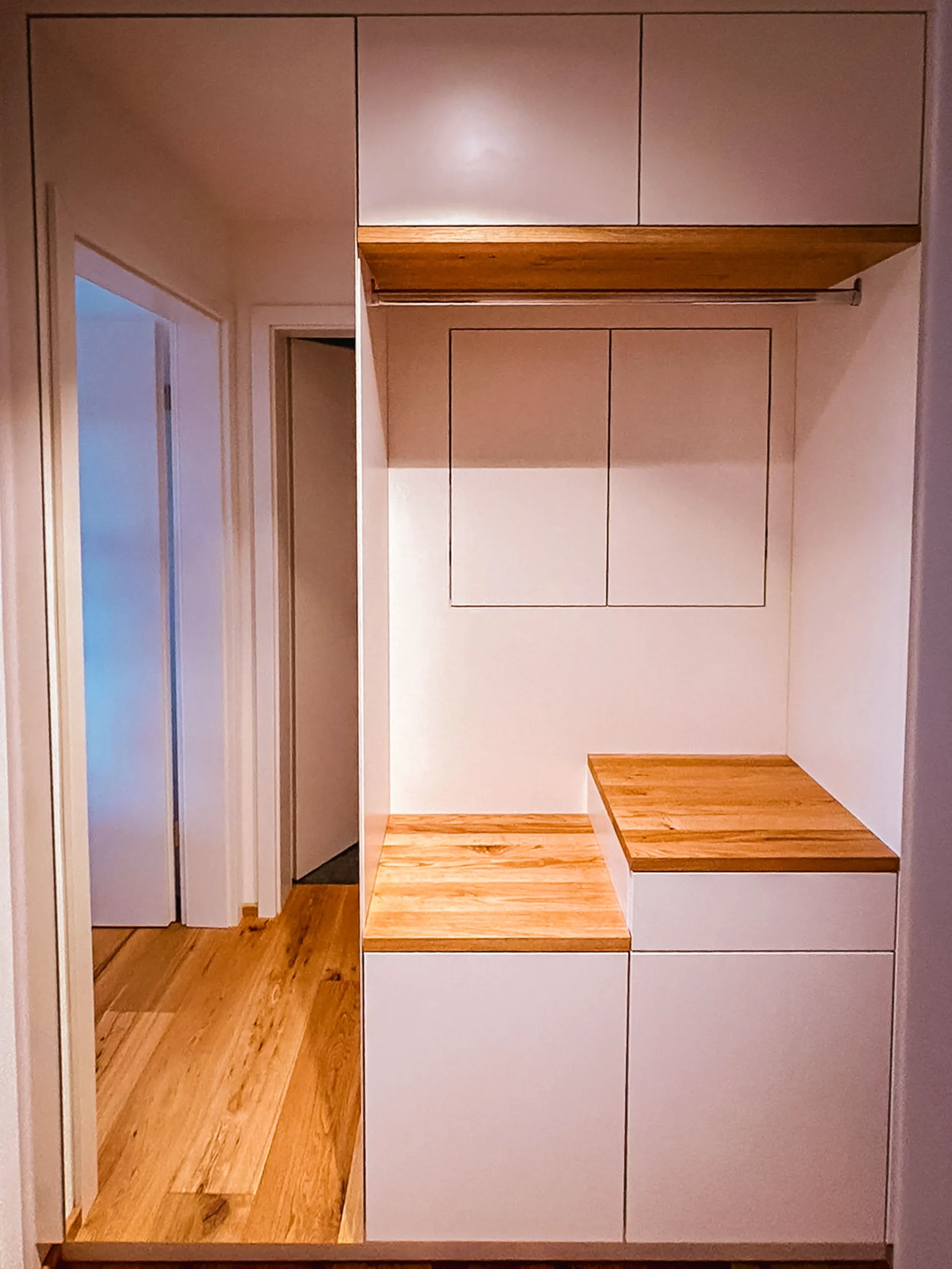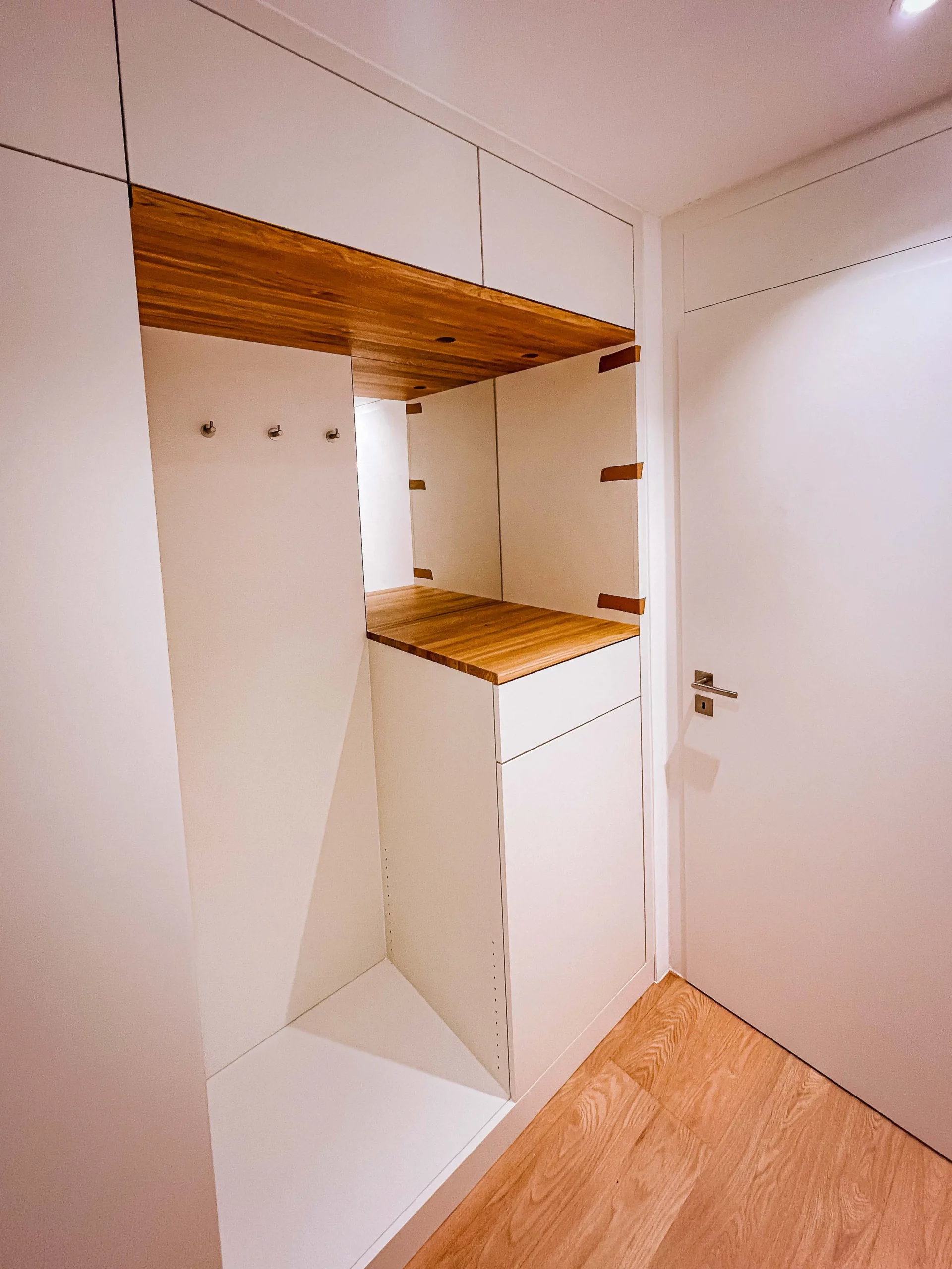 Individuelle Kleiderschränke, Schiebetüren und Stauraumlösungen, die Ordnung schaffen und den Raum beruhigend wirken lassen.